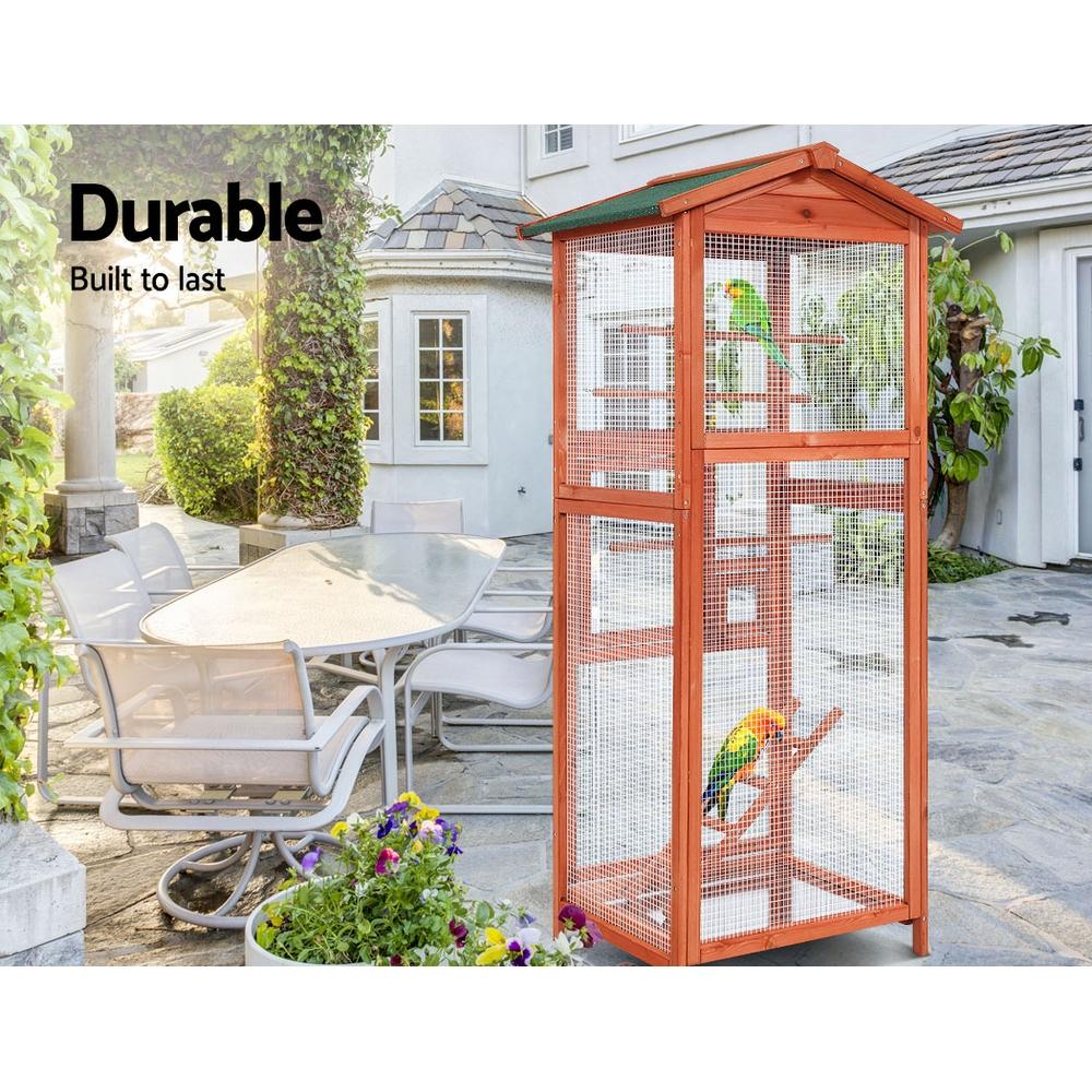 Provide your feathered friends with the perfect home with our Bird Cage Wooden Pet Cages Aviary Large Carrier Travel Canary Cockatoo Parrot XL. Designed to combine comfort, durability, and practicality, this spacious aviary offers an ideal environment for your birds to thrive. Crafted from high-quality fir wood and fitted with a weather-resistant green asphalt roof, this cage is suitable for both indoor and outdoor use, ensuring your pets are safe and comfortable no matter where you place it.