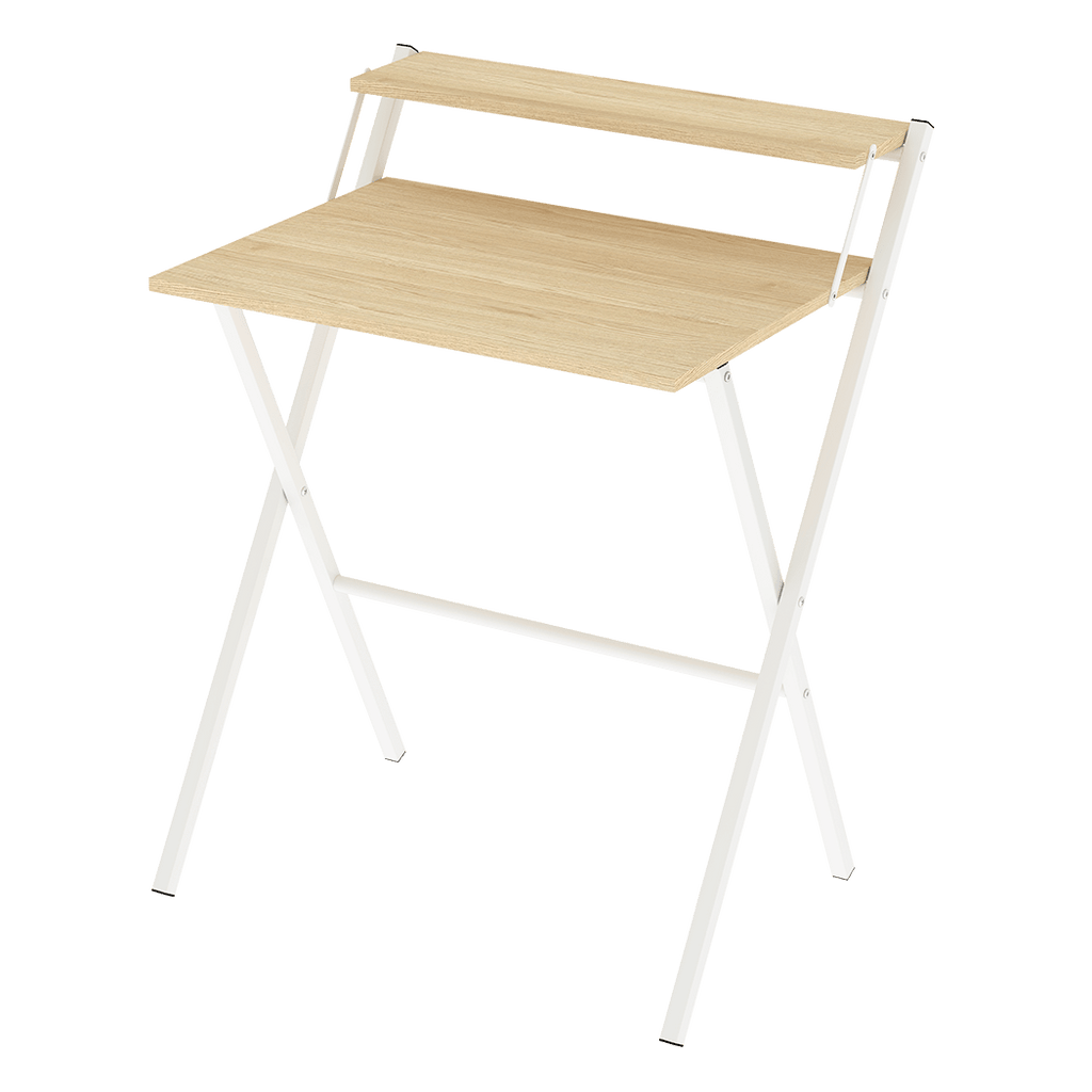 Foldable Computer Desk with Monitor Shelf Office Study Table - Oak and White