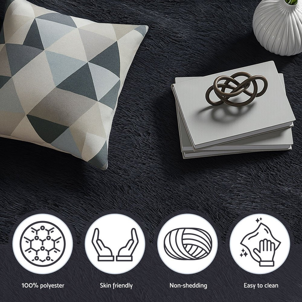 Transform your living space with the Plush Shaggy Floor Rug, designed to offer comfort and style in equal measure. Measuring 200x290cm, this luxurious black rug features a deep, soft pile combined with foam cushioning that provides a cosy and inviting surface for any room. Its anti-slip backing ensures safety while maintaining a modern aesthetic, making it an ideal addition to your bedroom or living area.