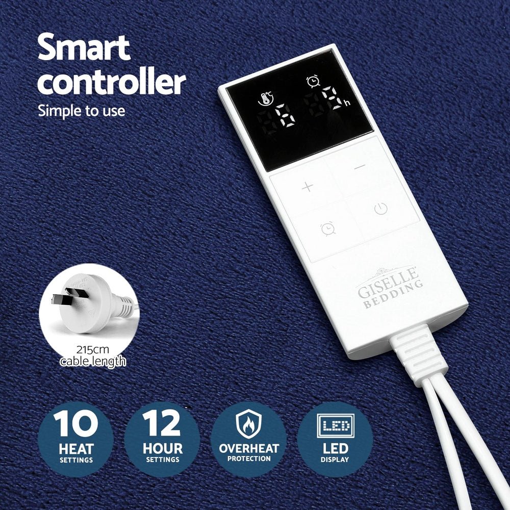 Get that warm and cosy feeling every day with a Giselle Bedding Electric Throw Rug. The double-sided throw rug is made from premium flannel and sherpa fabric, our electric throw rug is just the thing to help you cut down on costly heating bills while still enjoying the heat up-close. The throw rug has all the features of our electric blankets with up to 9 temperature settings, a 9-hour timer, overheat protection, automatic shut-off and a detachable controller with LED display so you can always be in control of the temperature. It is anti-dust mite and bacteria and is machine washable for a clean blanket time and time again. Keep your bedroom or living room cosy and comfortable with a warm and huggable Giselle Bedding Electric Throw Rug.