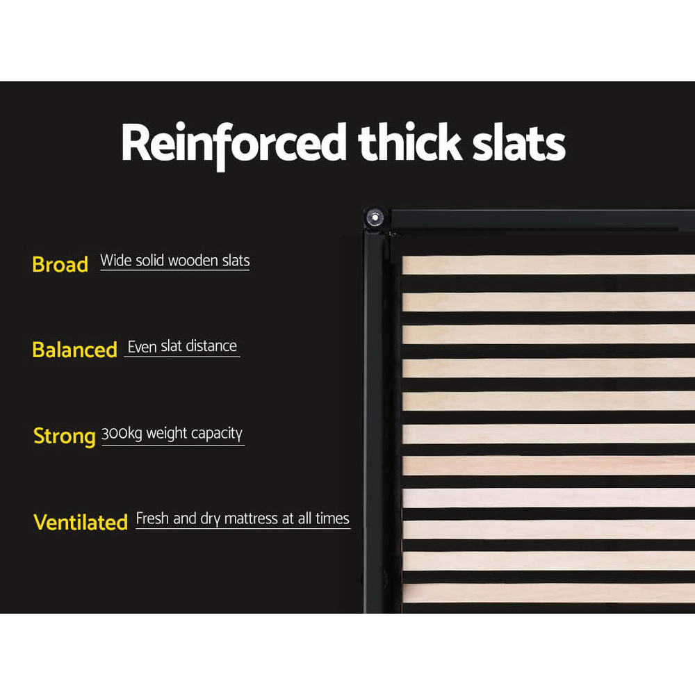 And if so desired, the bed frame can be matched with our compatible bed head for a complete look. The bed frame is designed to fit standard Australian-sized mattress.